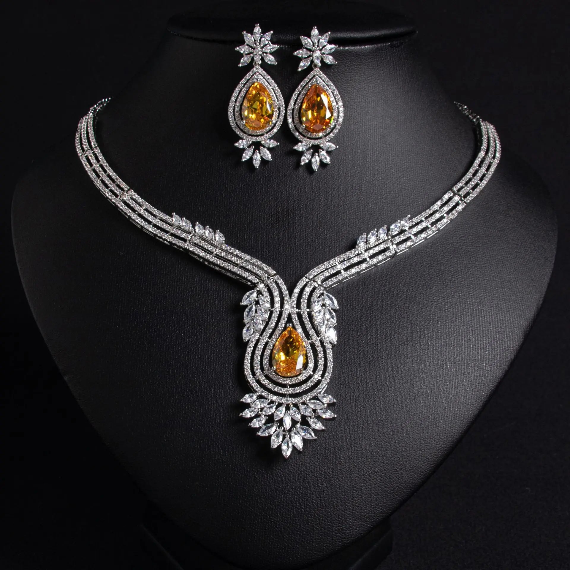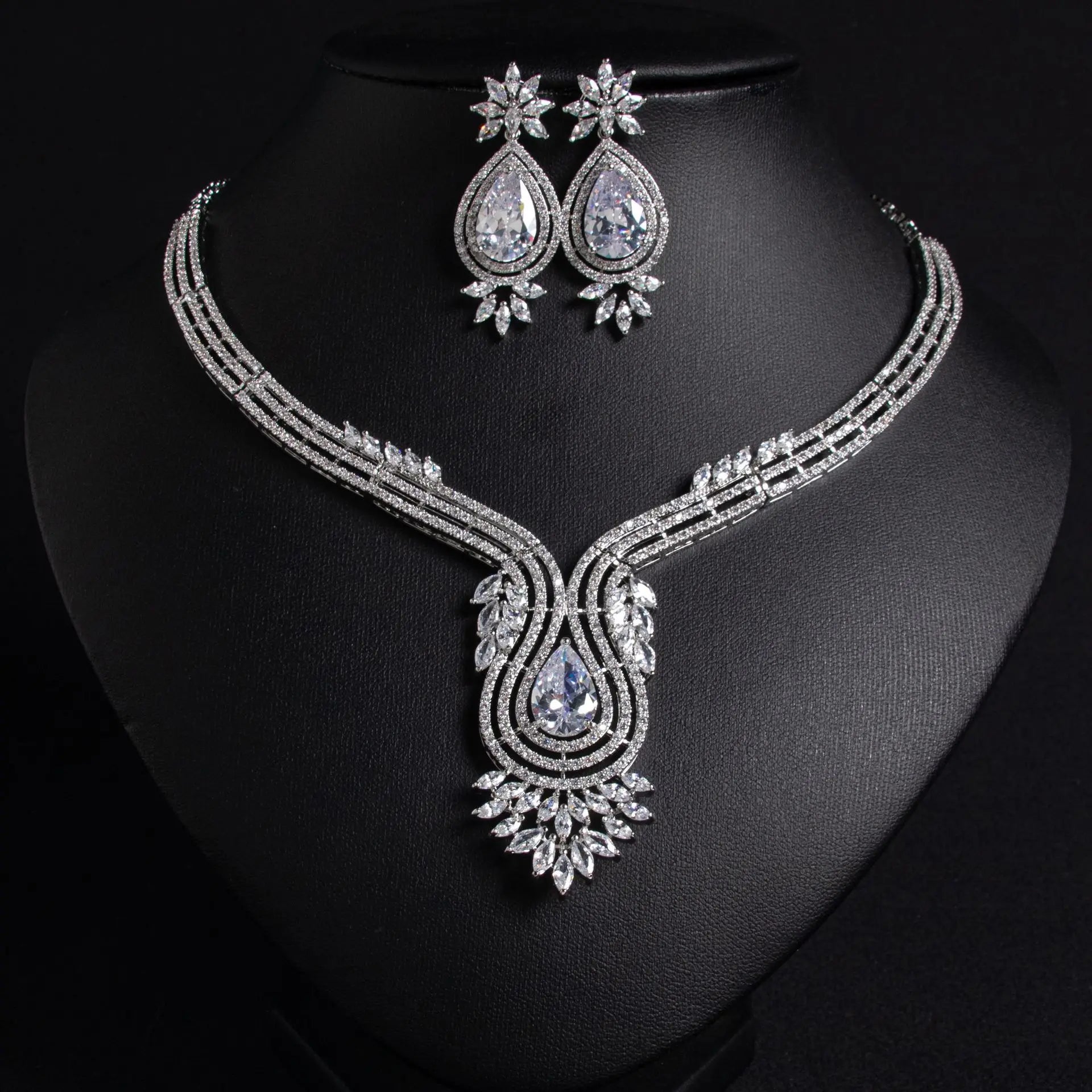 Luxury CZ Necklace 2 Pieces Jewelry for Women Cubic Zircon Africa Dubai Bridal Jewelry Sets Wedding Accessories