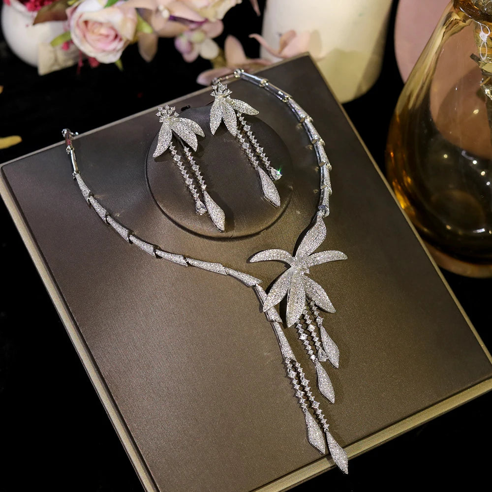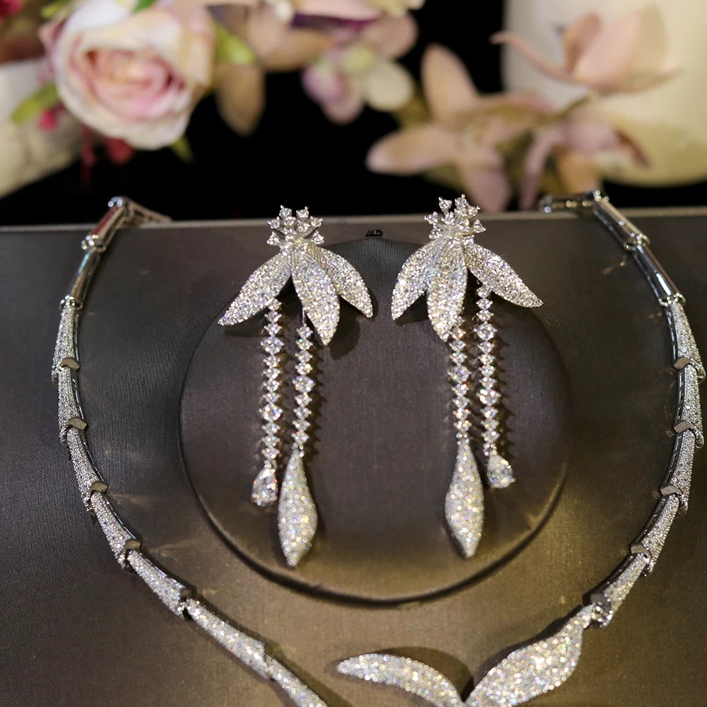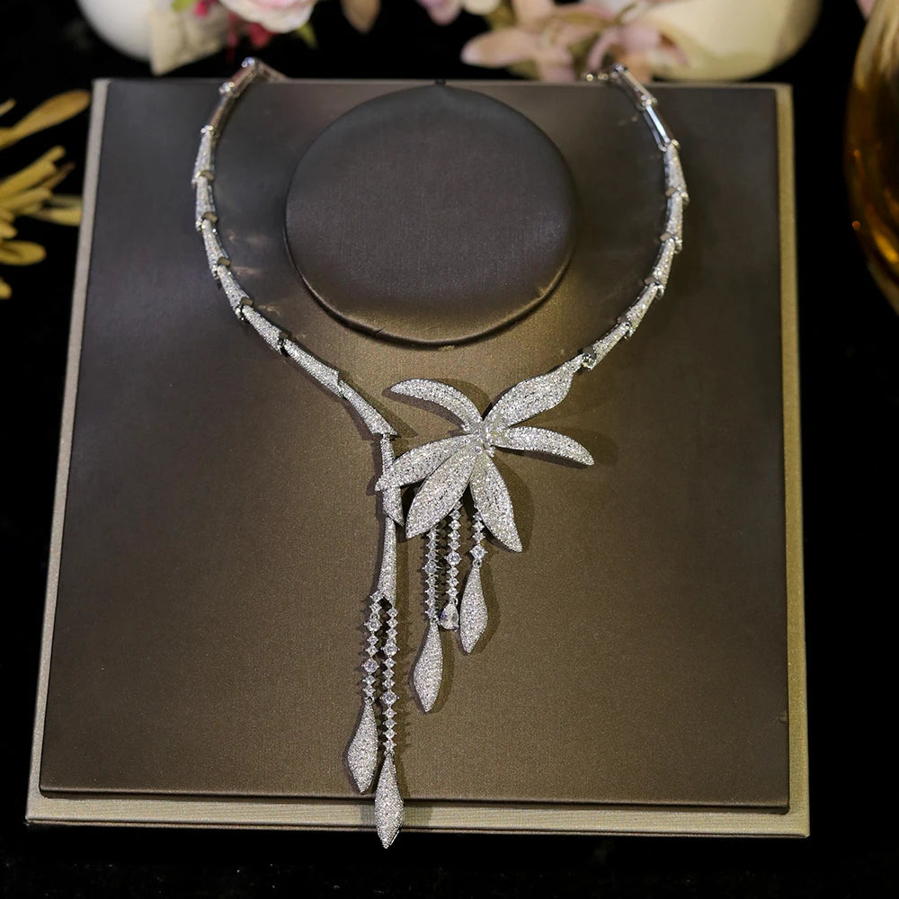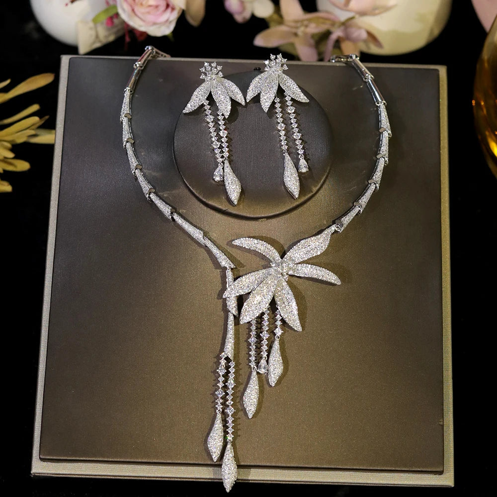 Luxury Wedding Party Zircon Flower Necklace Set Bridal Jewelry Women conjunto collar y pendientes conjuntos femininos elegantes