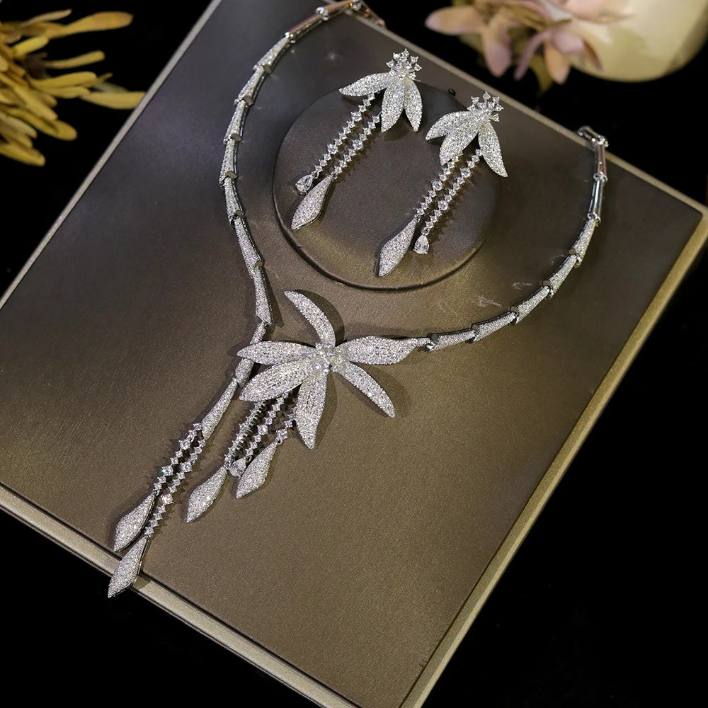 Luxury Wedding Party Zircon Flower Necklace Set Bridal Jewelry Women conjunto collar y pendientes conjuntos femininos elegantes