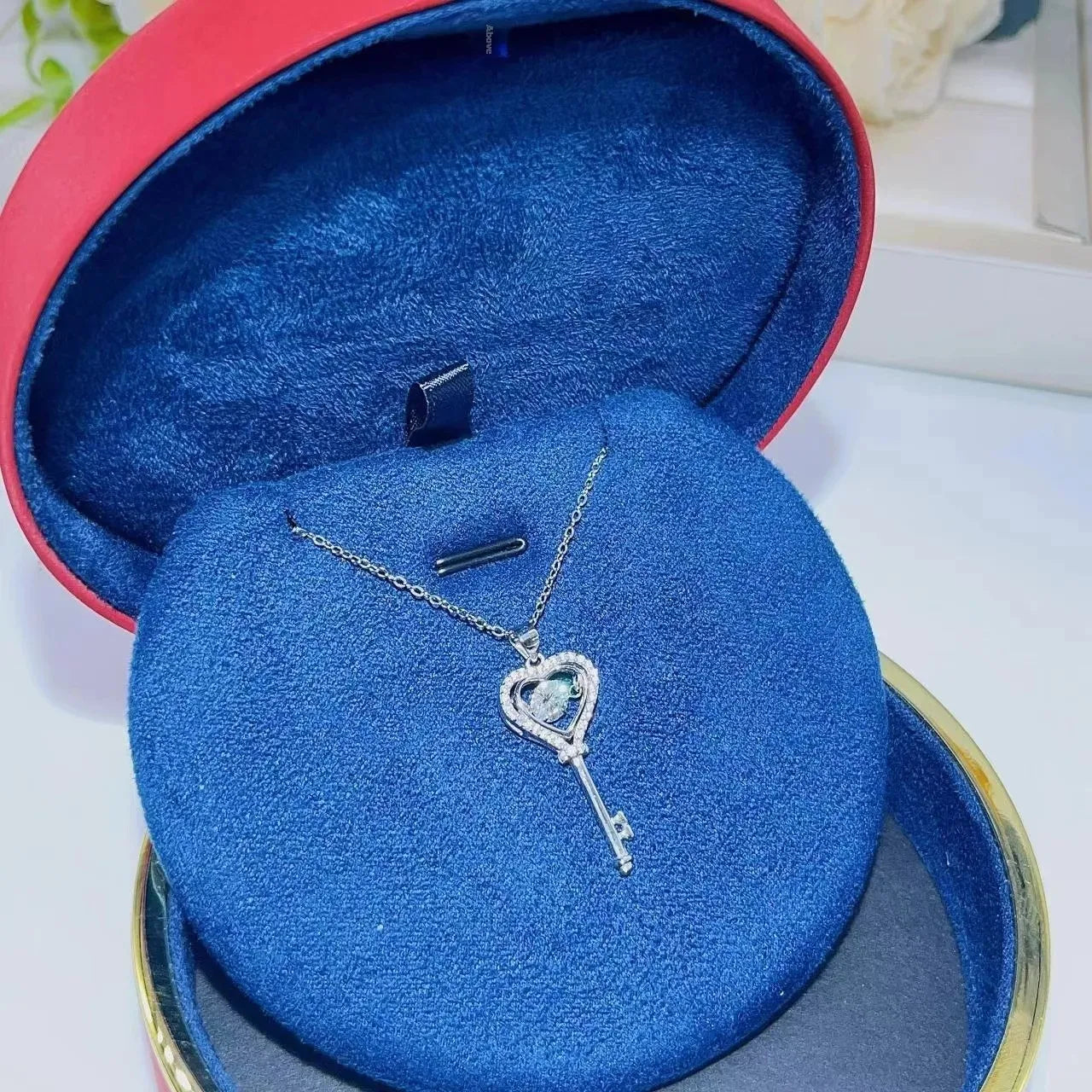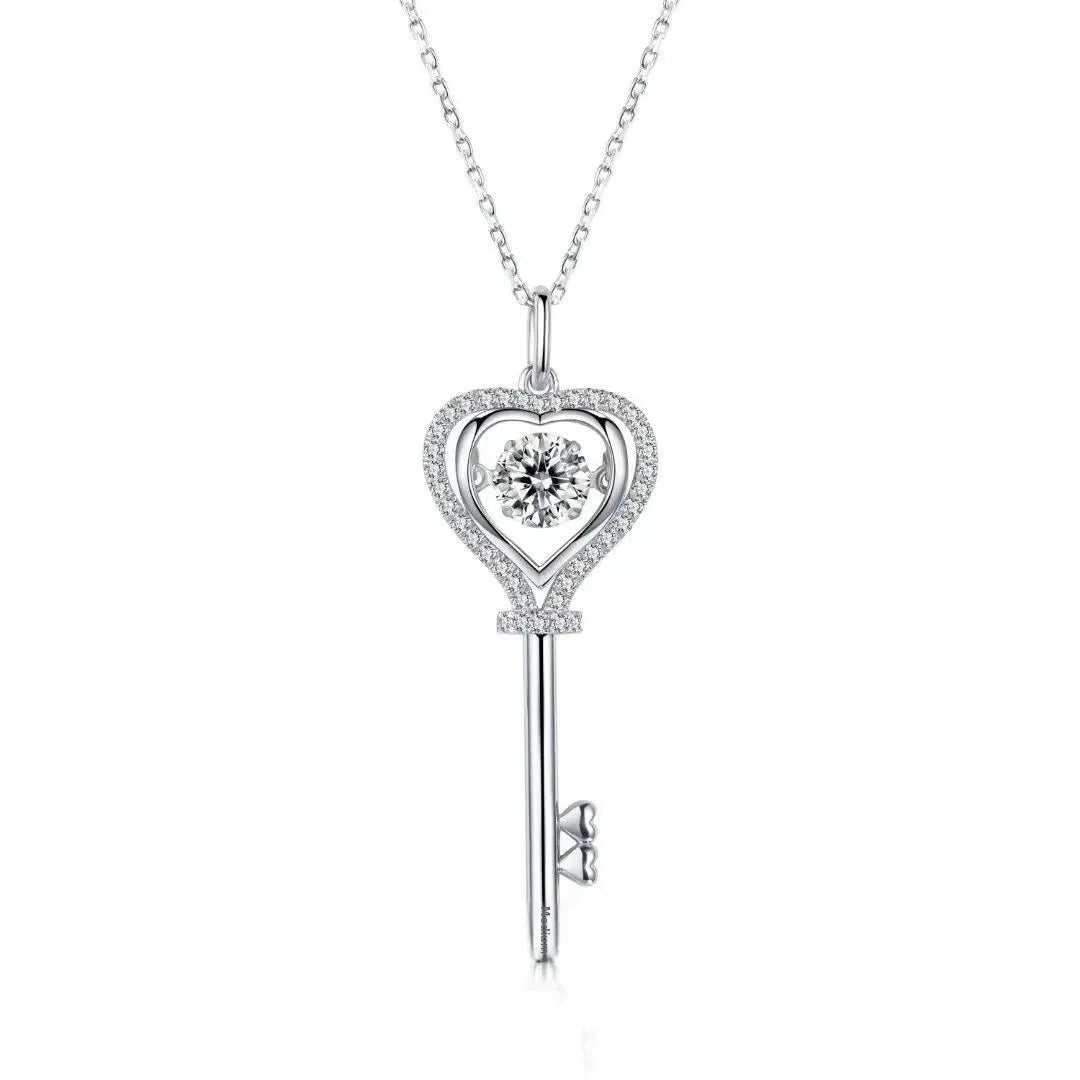 Moissanite Diamond Necklace Women's Light Luxury NicheS925 Silver 50 Parts Moissanite Heart Spirit Key Pendant Christmas Gift