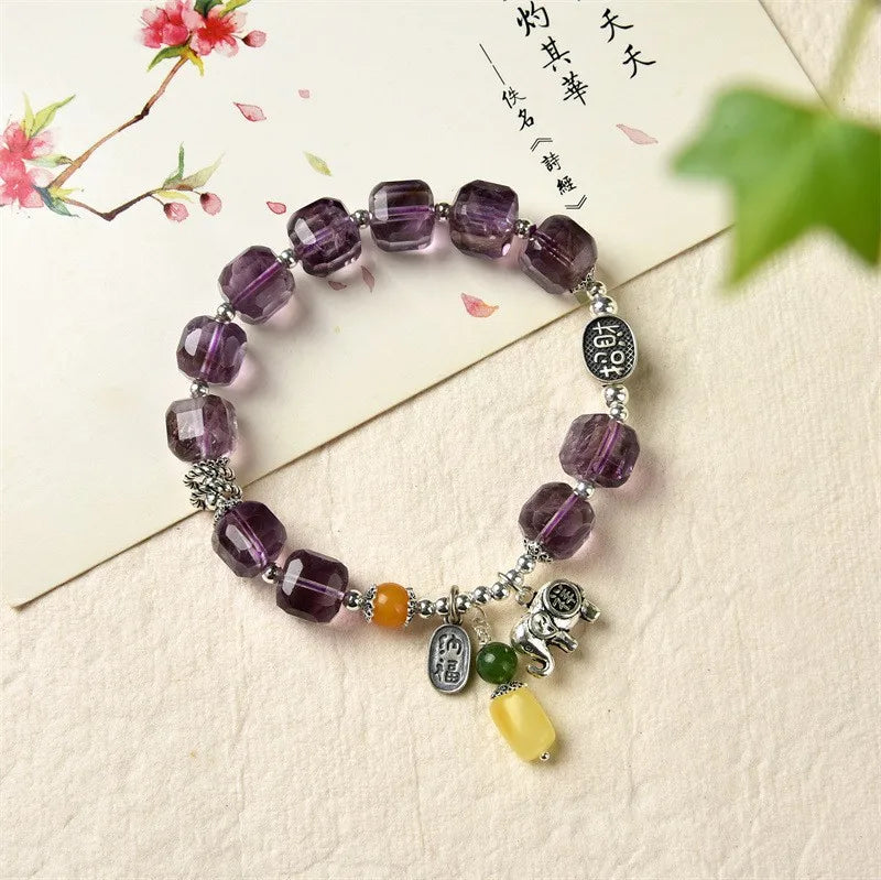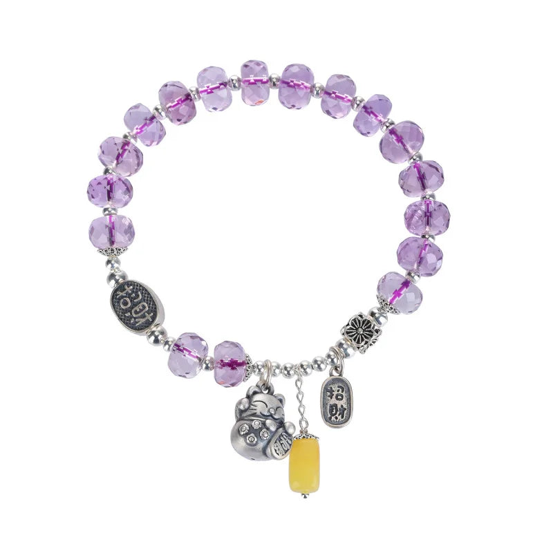 Natural S925 Sterling Silver Cut Amethyst Bead Playing Bracelet