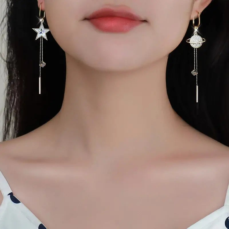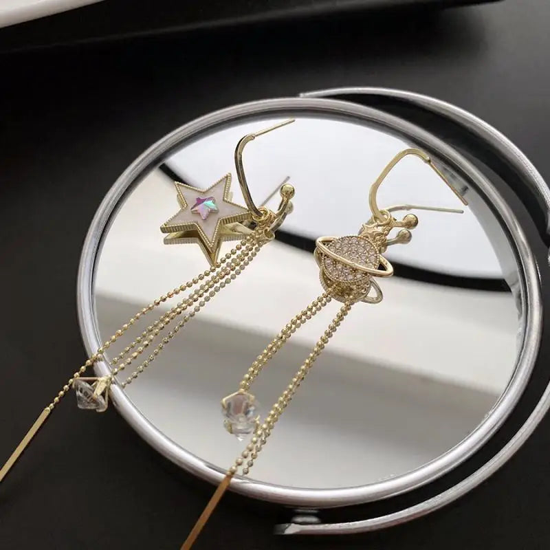 New Fashion Pentagram Asymmetric Long Tassel Earring