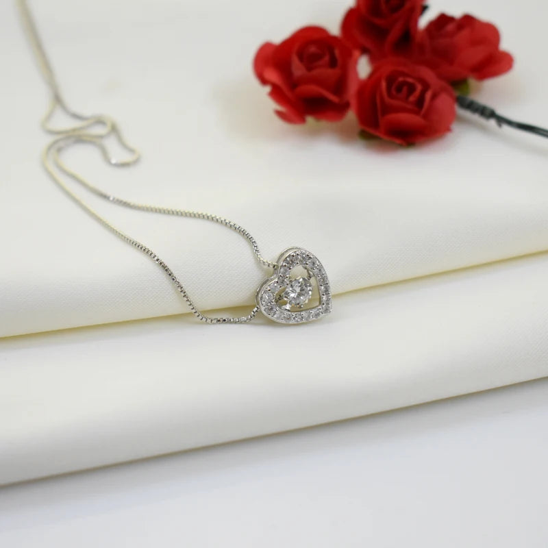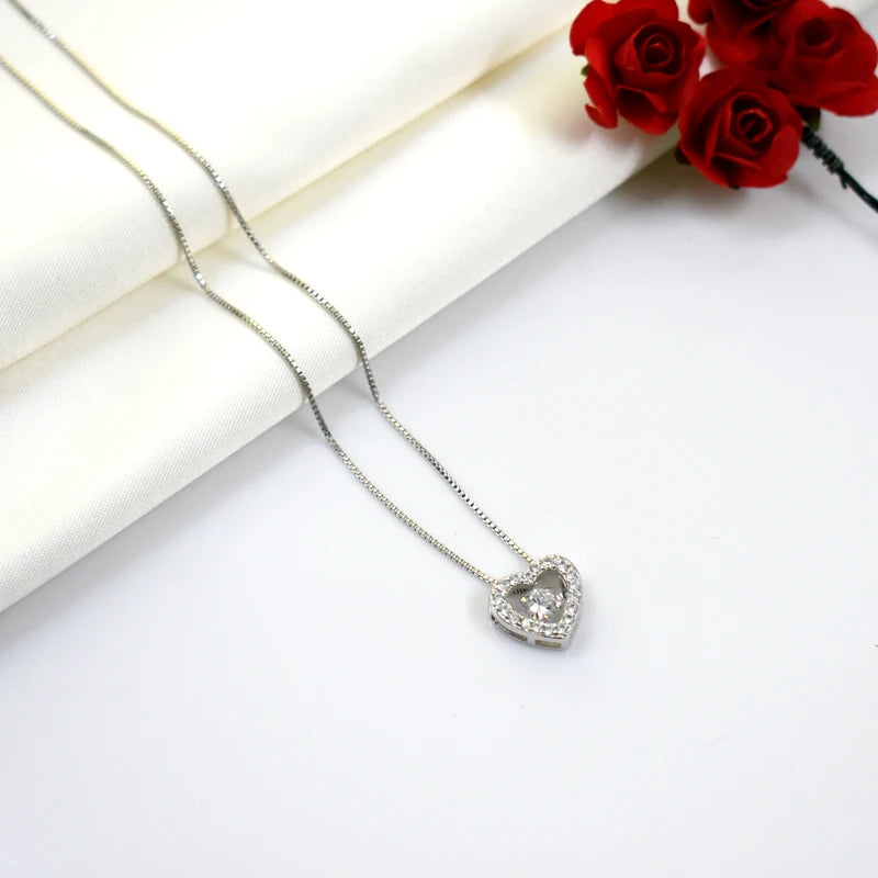 New Fashion Rotatable Dance Rhinestone Heart Pendant Necklaces 925 Sterling Silver Jewelry Women&Girl Love Lock Zircon Choker