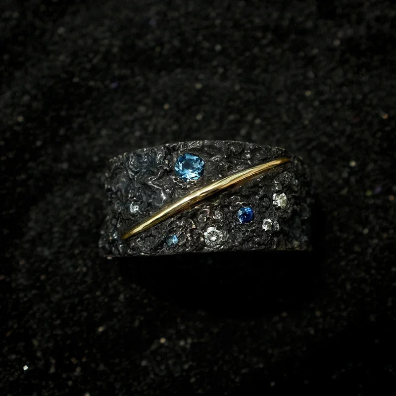 New in 925 Silver Black Inlaid Starry Sky Blue Gemstone