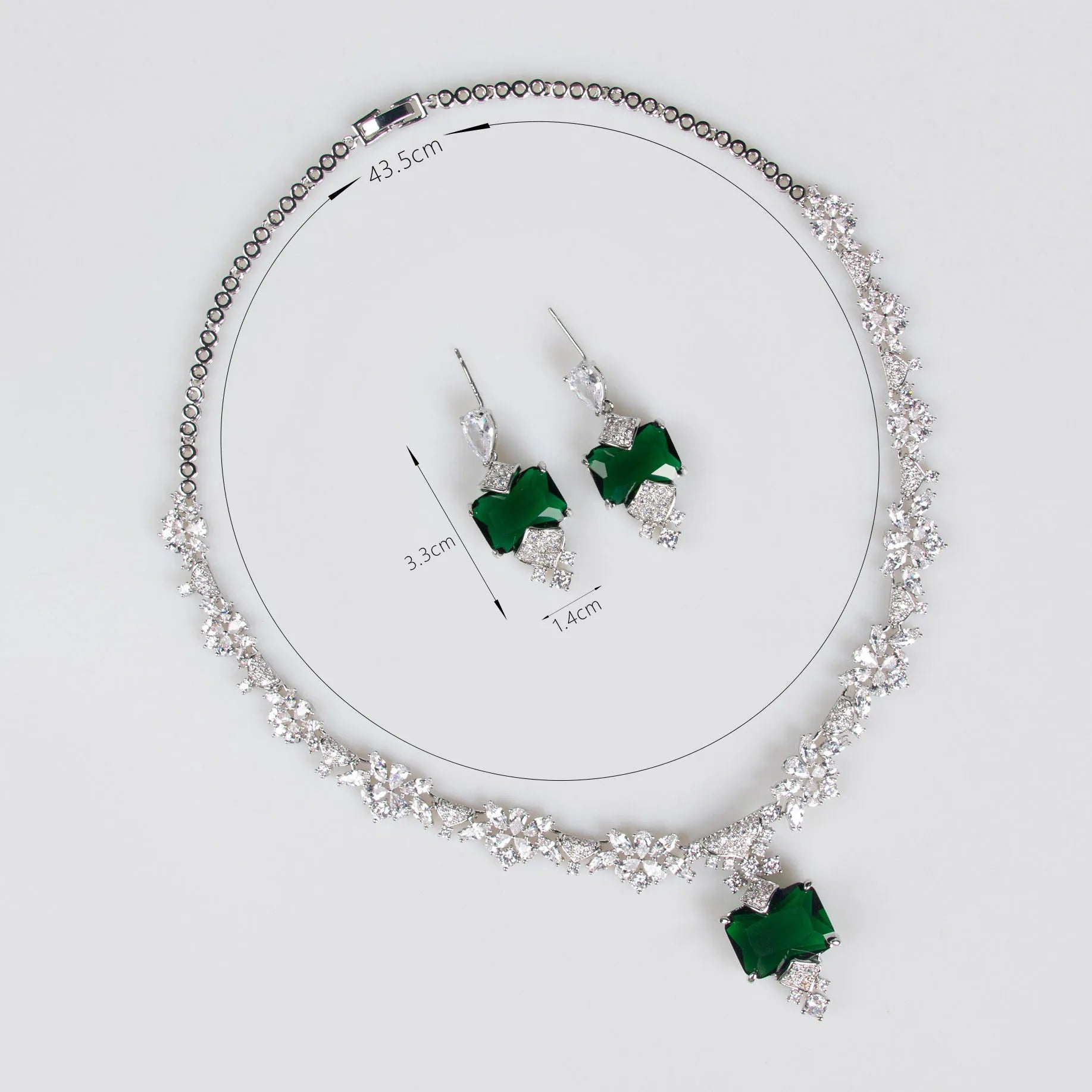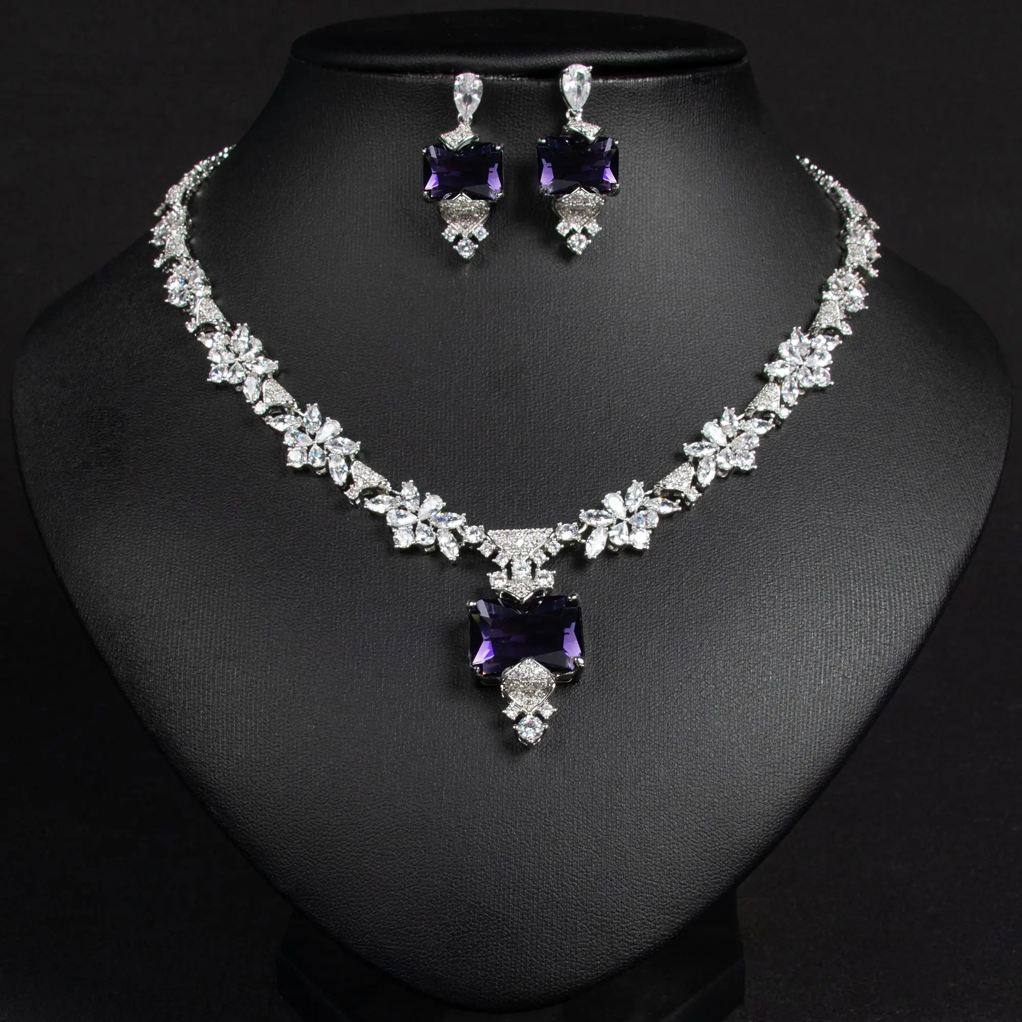 New Luxury Jewellery Square Flower Necklace Earrings Pendant Ladies Zirconia Accessories Set Party Prom Gift Dress M-339