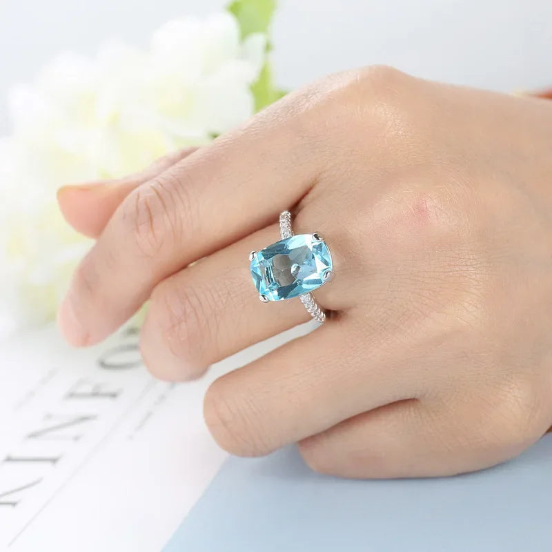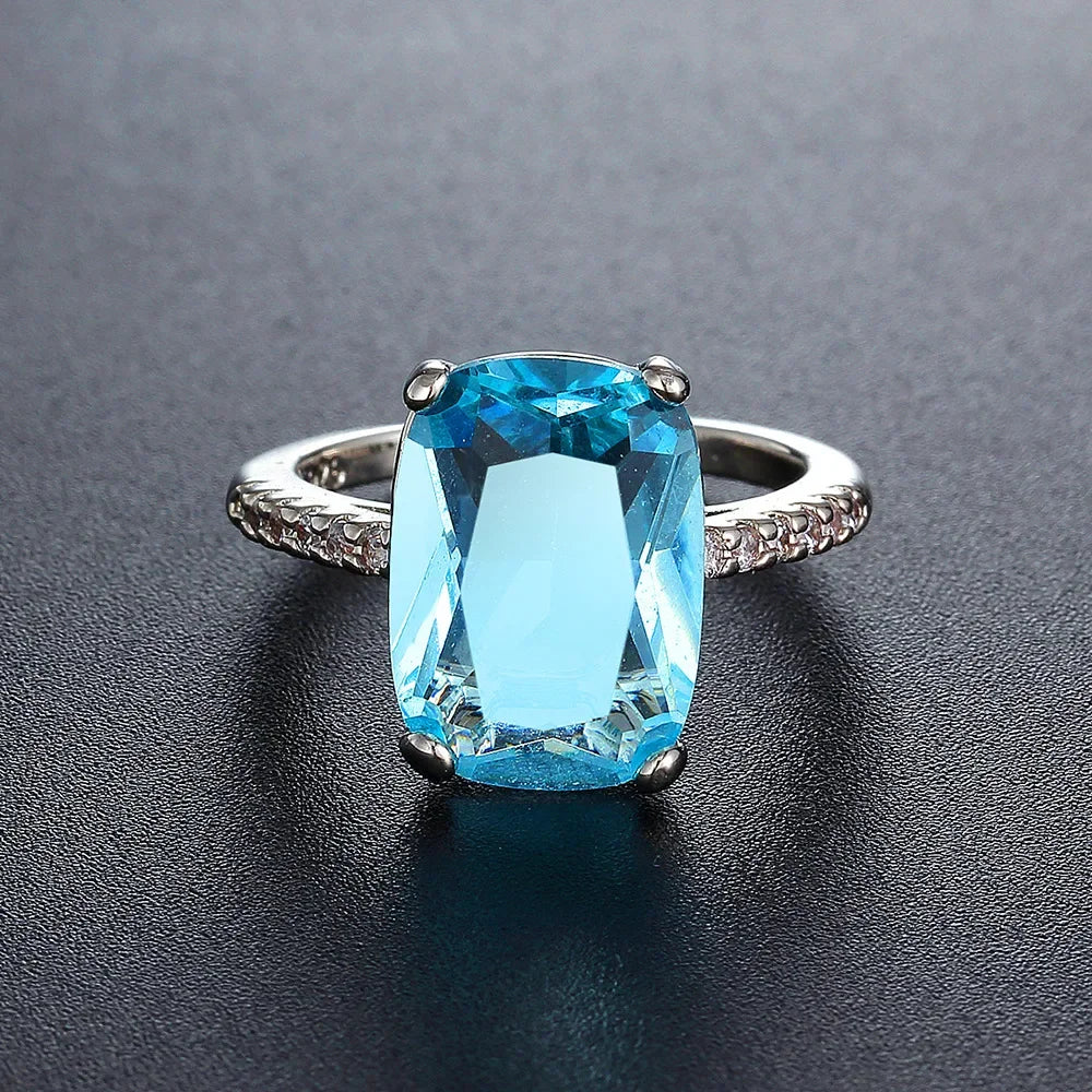 New Round Finger Ring Dazzling Blue AAA Cz Zircon Stone