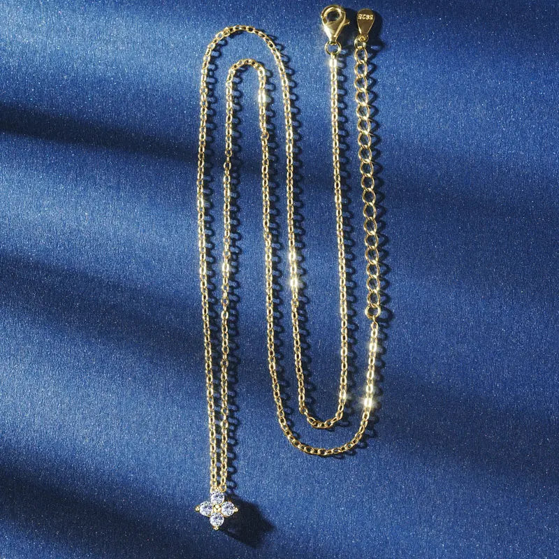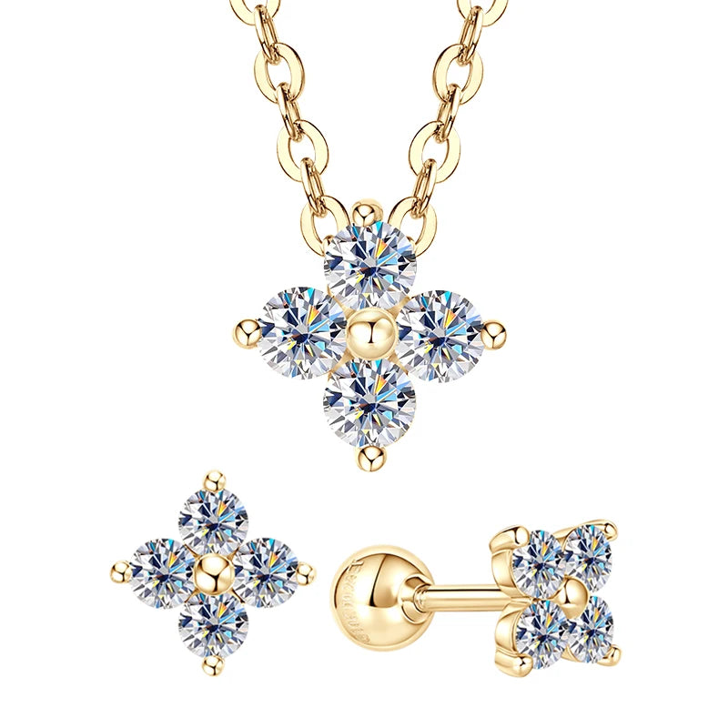 OXTAO Pure 10K Gold Moissanite Jewelry Set GRA Certified Clover Flower Pendant Necklace Mini Cute Earring Wedding Jewelry Gifts