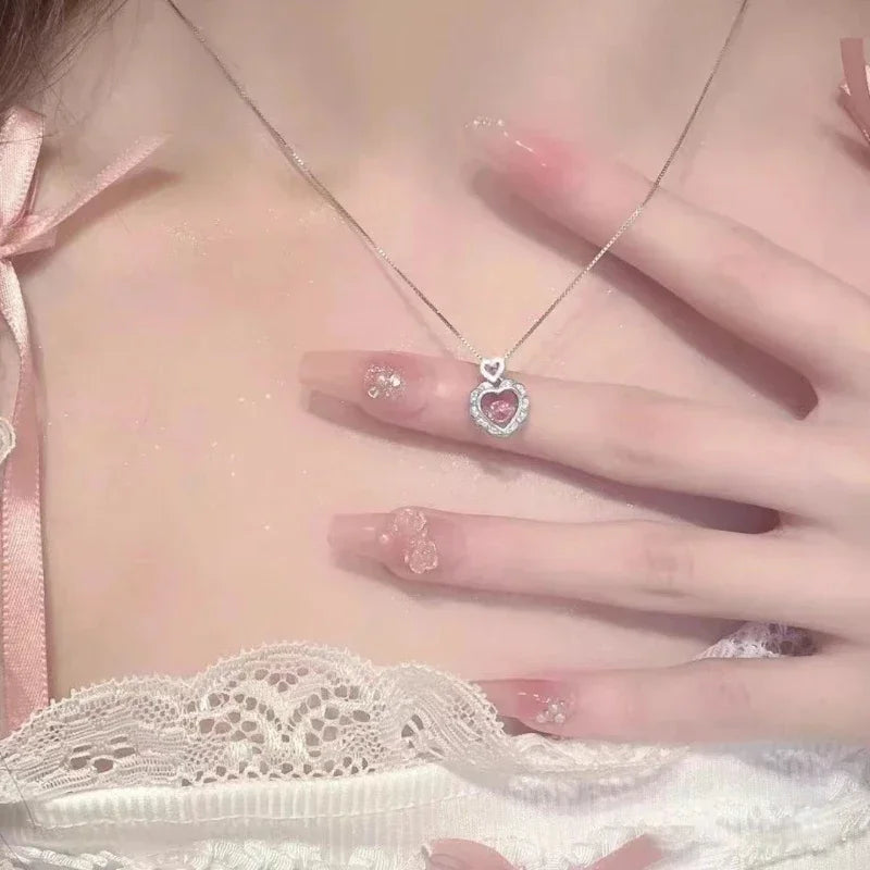 Pink Crystal Pendant Heart Necklace for Women Girls Chain Cute Love Simple Necklaces Fashion Jewelry Gifts Jewelry for Women