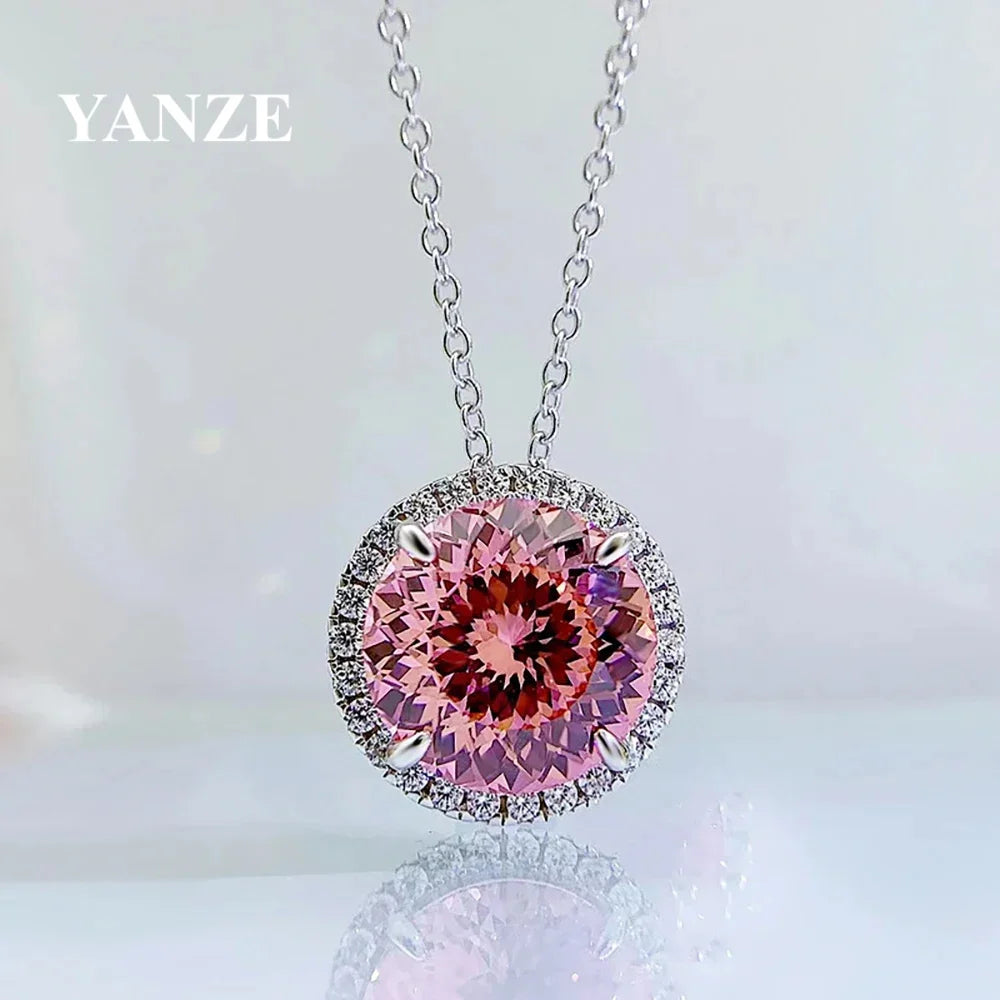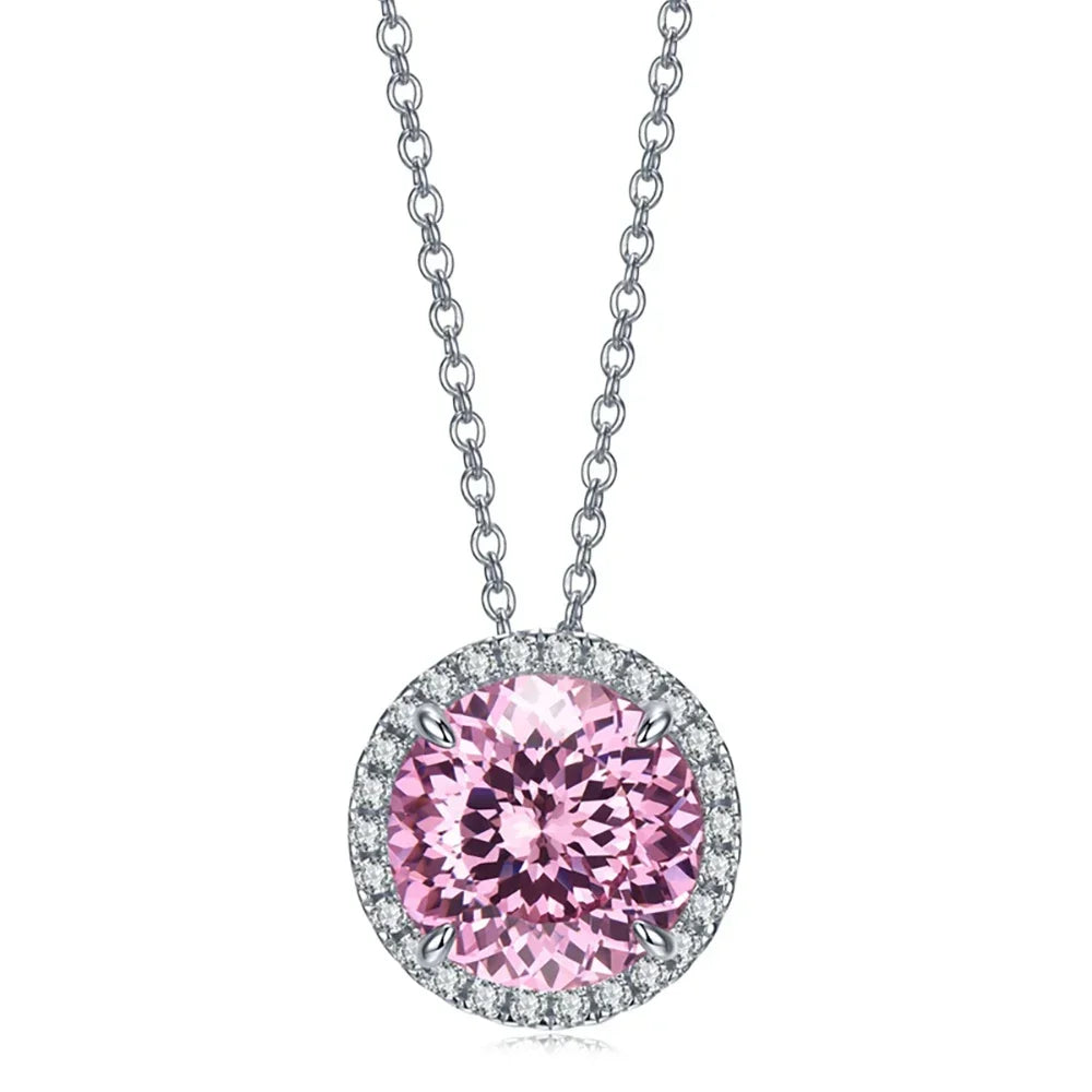 Pink Gem Necklace 5Ct S925 Sterling Silver Plate Platinum Jewelry Inlaid High Carbon Diamond Pendant Chain