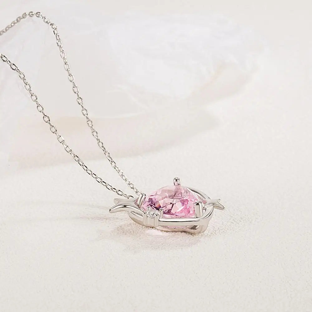 Pink Heart Pendant Necklace for Women Lovers Rhinestione Clavicle Chain Chocker Female Cute Crystal Moonstone Necklace Jewl F7K6