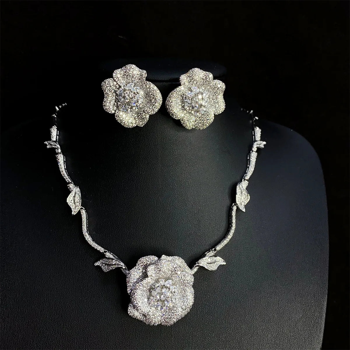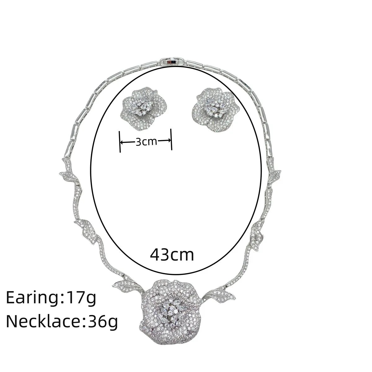 Premium Heavy Duty Rose Necklace Earrings Super Shiny Zirconia Jewellery Women's Set Party Bridal Wedding Accessories M-197