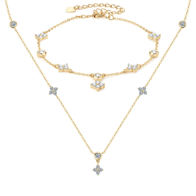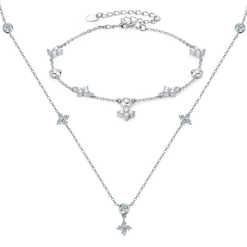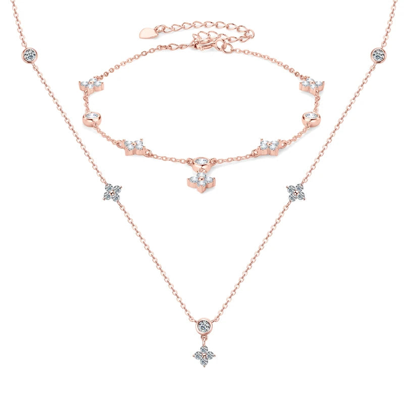 Real Moissanite Pendant Necklace Bracelet Earrings Sets For Women 925 Silver Rose Gold Plated Four Leaf Clover Jewelry Set Gift