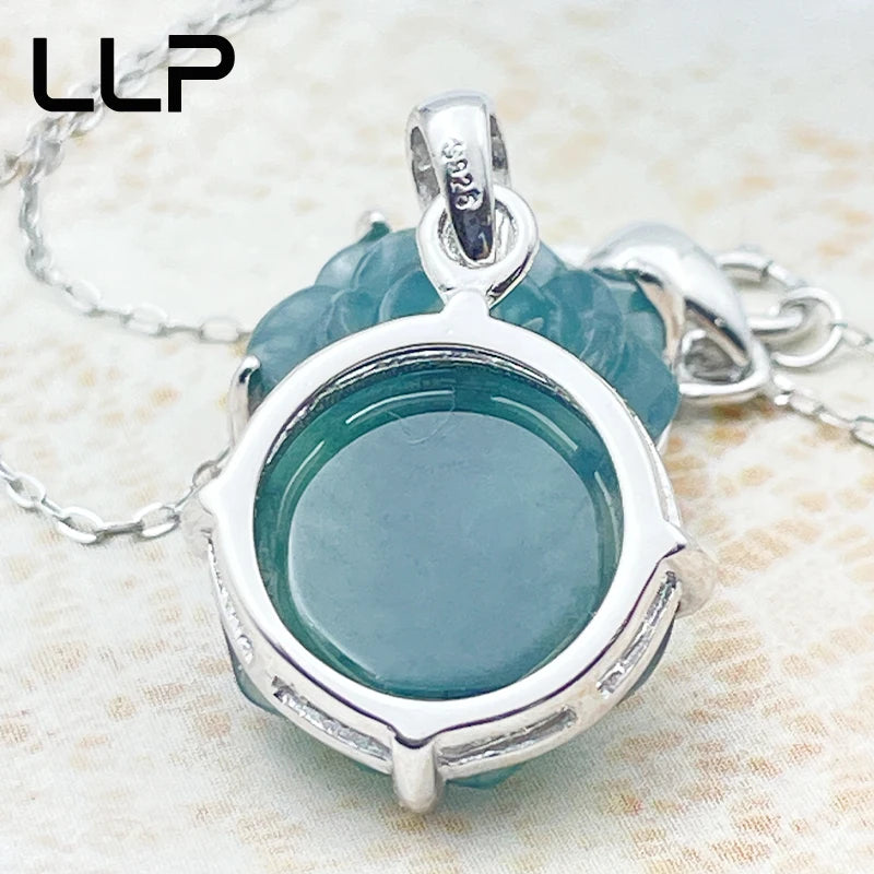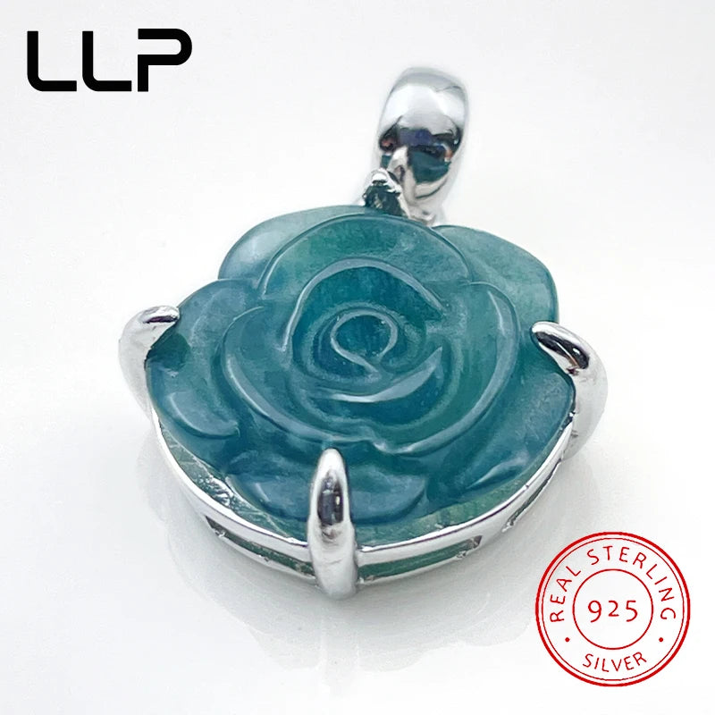 S925 Silver Inlaid Natural Rose Jade Pendant Temperament Elegant Woman Sexy Girl Holiday Gift