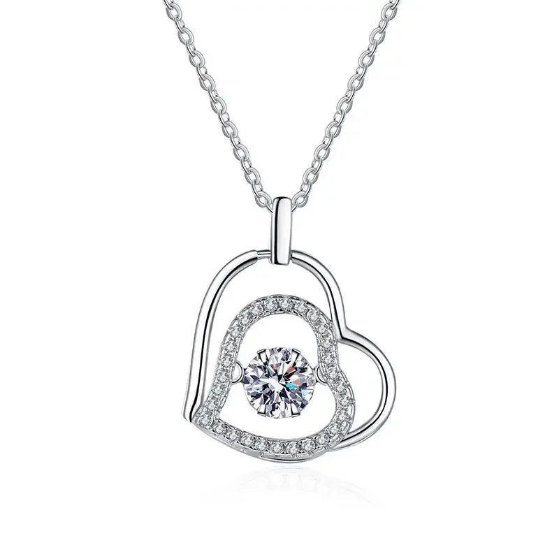 S925 Sterling Silver Heart Shaped Pendant Necklace Clavicle Bone Cross Border Jewelry MOissanite Sparkling Pure Silver Heart