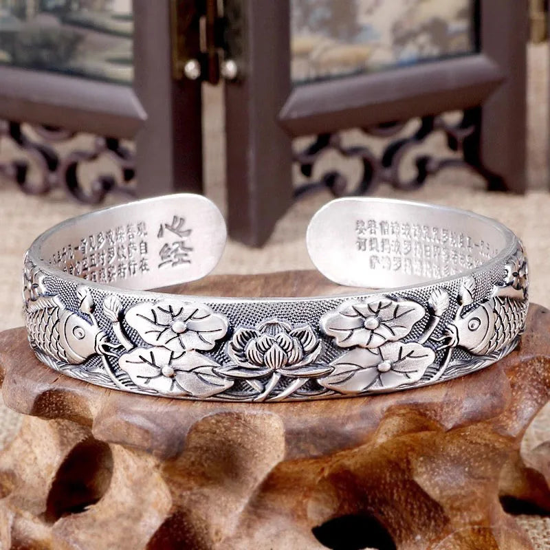 Silver 925 Retro Exquisitely carved Lotus flower bracelet