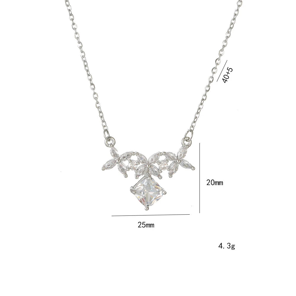 Stainless Steel Chain Simple Flower Zircon Pendant Necklace for Women Lady Romantic Jewelry Accessories Sweet Gifts