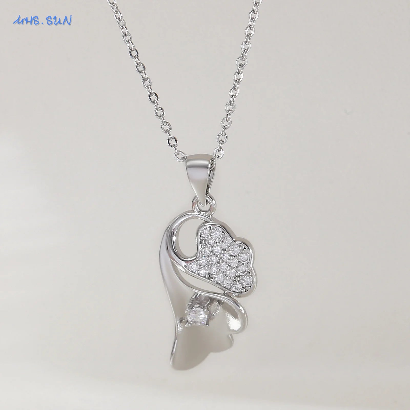 SUNSLL Unique Cubic Zircon Flower Pendant Necklaces For Women Girls Gold Plated Simple Clavicle Chain Daily Jewelry 1Pcs