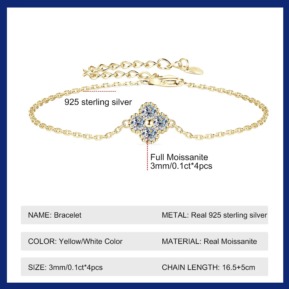 SPECIFICATIONSBracelets Type: Charm BraceletsBrand Name: NoEnName_Null,SweetrainCertificate: YesCertificate Type: NGSTCClarity: D Color VVS1Cut Grade: ExcellentEurope delivery time: Usually within 3-12 daysFine or Fashion: FineGender: WomenHign-concerned Chemical: NoneItem Type: BRACELETSItem Weight: otherKorea delivery time: Usually within 3-12 daysMain Stone: Moissanite,MoissaniteMaterial: 925 Silver +VVS Moissanite,925 sterling sliver plated 18k gold +AF protect filmMetal...
