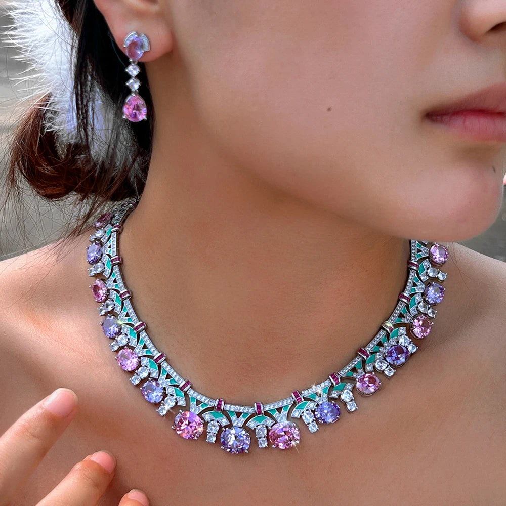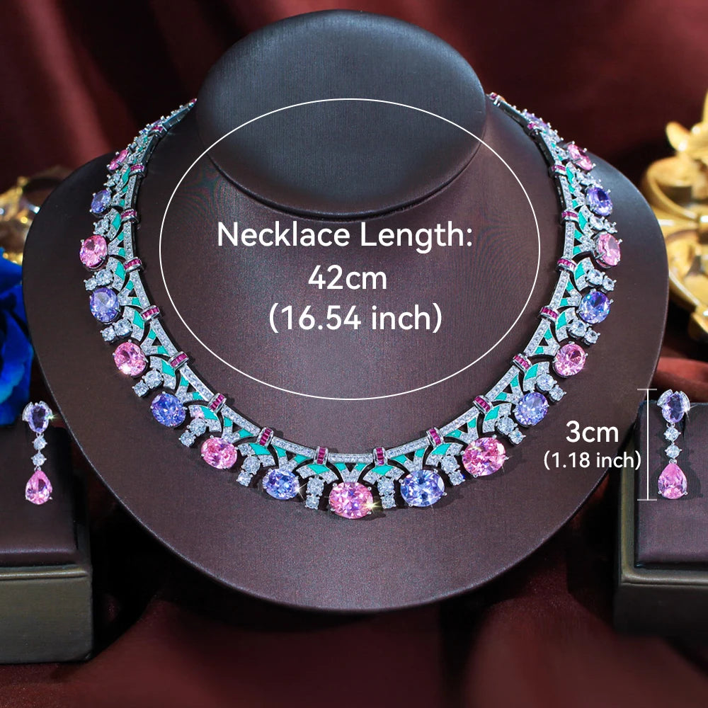 ThreeGraces Delicate Shiny Pink Purple Zirconia Green Enamel Luxury Bridal Wedding Prom Jewelry Set for Women Accessories T1070