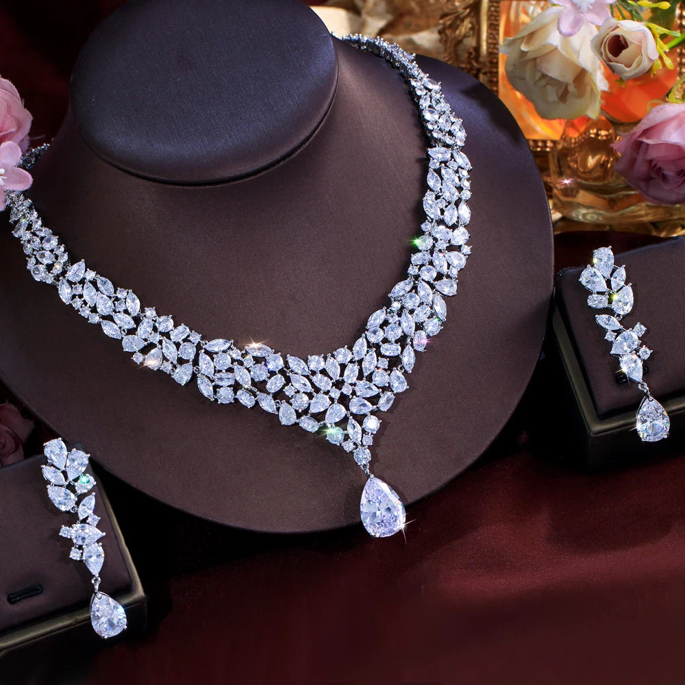 ThreeGraces Exquisite Sparkling Water Drop Cubic Zirconia Luxury Bridal Wedding Evening Party Jewelry Set for Brides T1064