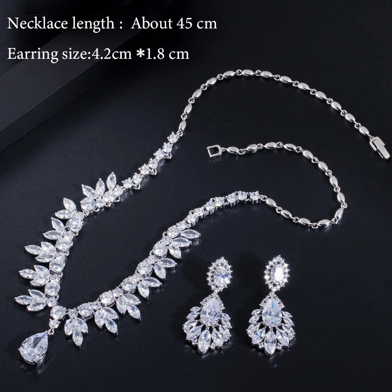 ThreeGraces Top Quality American Bridal Accessories CZ Stone Wedding Costume Necklace and Earrings Jewelry Sets For Brides JS003