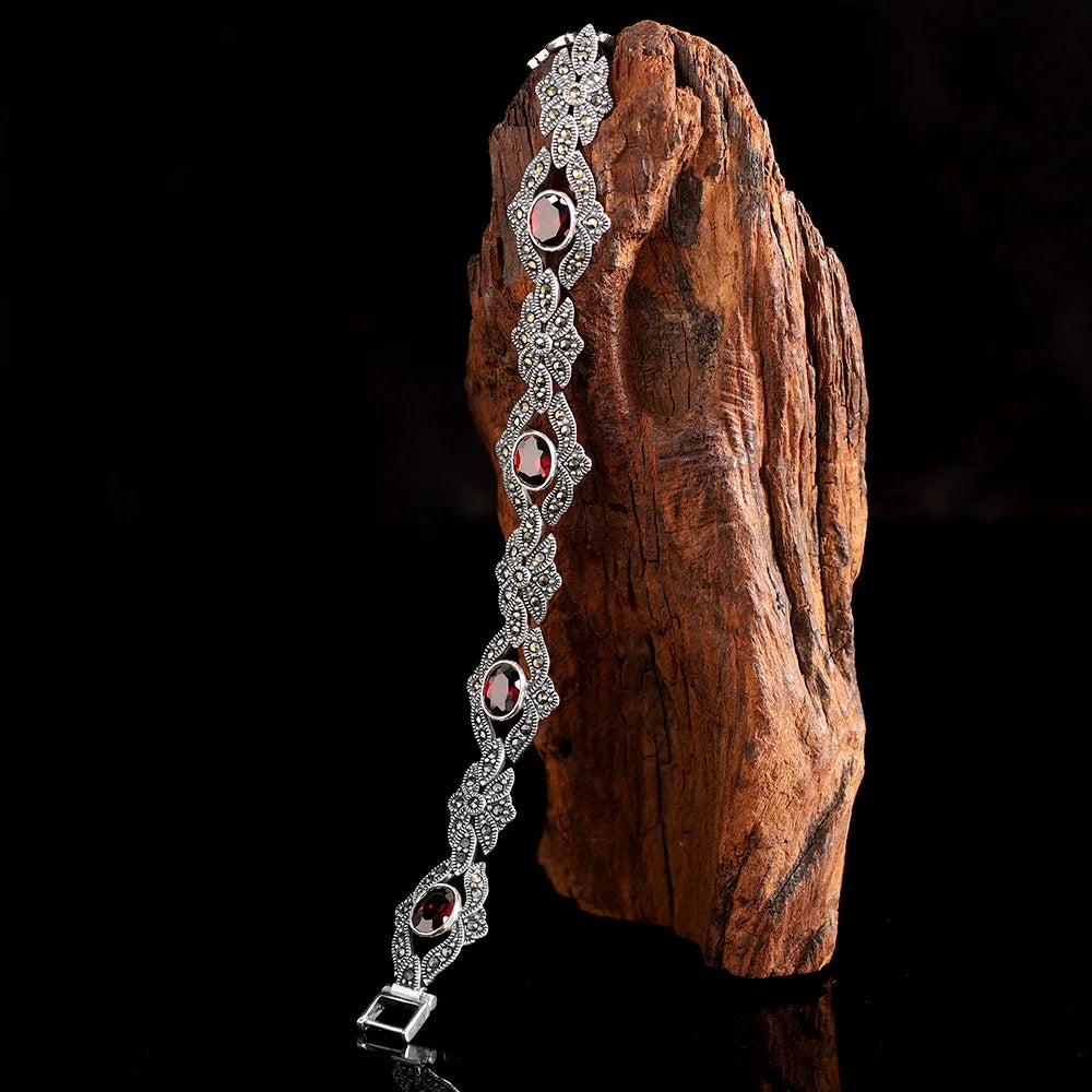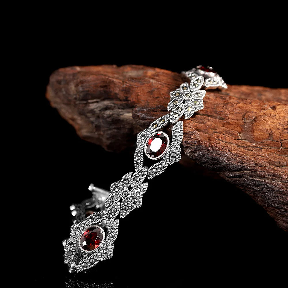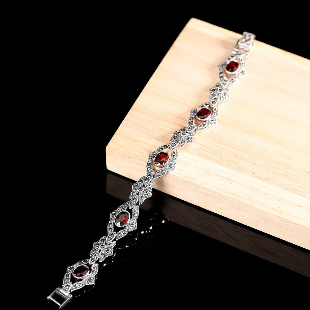 SPECIFICATIONSBracelets Type: Cuff BraceletsBrand Name: UglylessCertificate: NoCertificate Type: Third Party AppraisalContact with us: If u want to customize your designsCustomizing: We can customize Clients' DesignsDiameter: OpenFine or Fashion: FineGarnet: About 6X8MMGender: Women,Female Girls Women Lady StudentsHign-concerned Chemical: NoneItem Type: BRACELETSItem Weight: About 24gLength: About 18.5CMMain Stone: GarnetMetal Stamp: 925,SterlingMetals Type:...