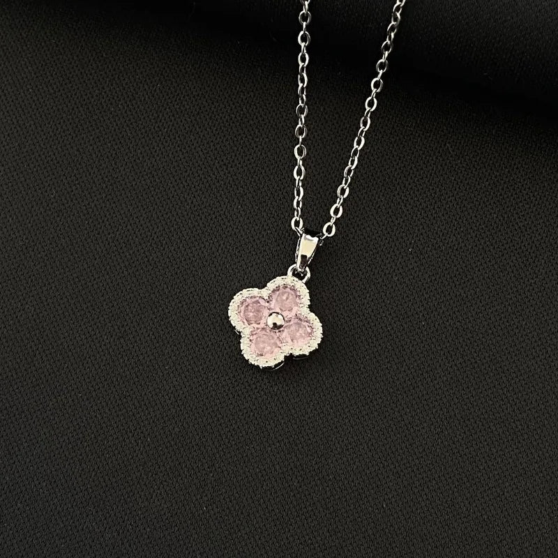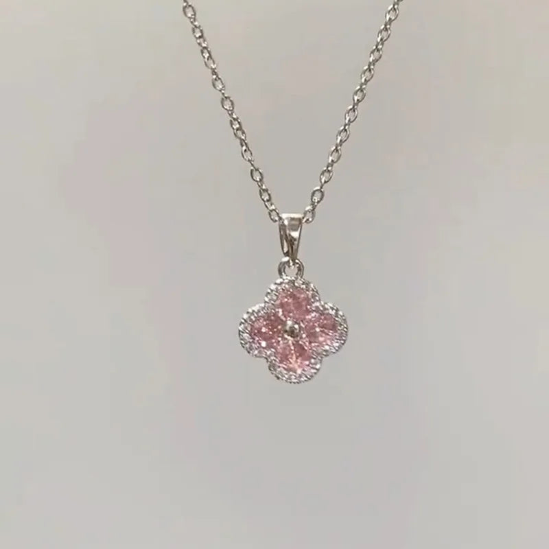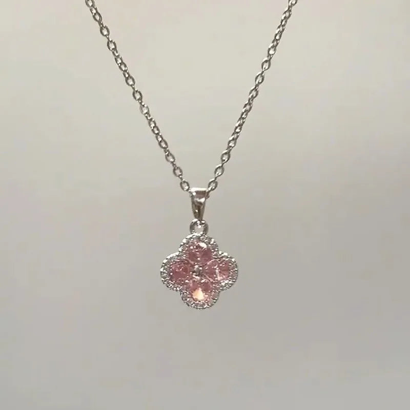 Trend Pink Four Leaf Flower Zircon Pendant Necklaces for Women Fashion Jewelry Light Luxury Minimalist Accessories