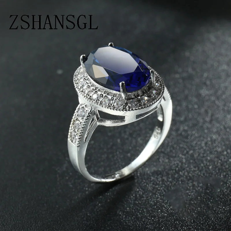 Trendy Real 925 Sterling Plata Luxury Blue Zircon