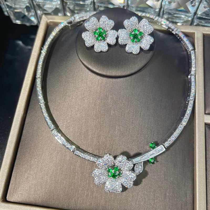 Vintage Lab Emerald Diamond Jewelry set 925 Sterling Silver Wedding Necklace Earrings For Women Bridal Engagement Jewelry Gift