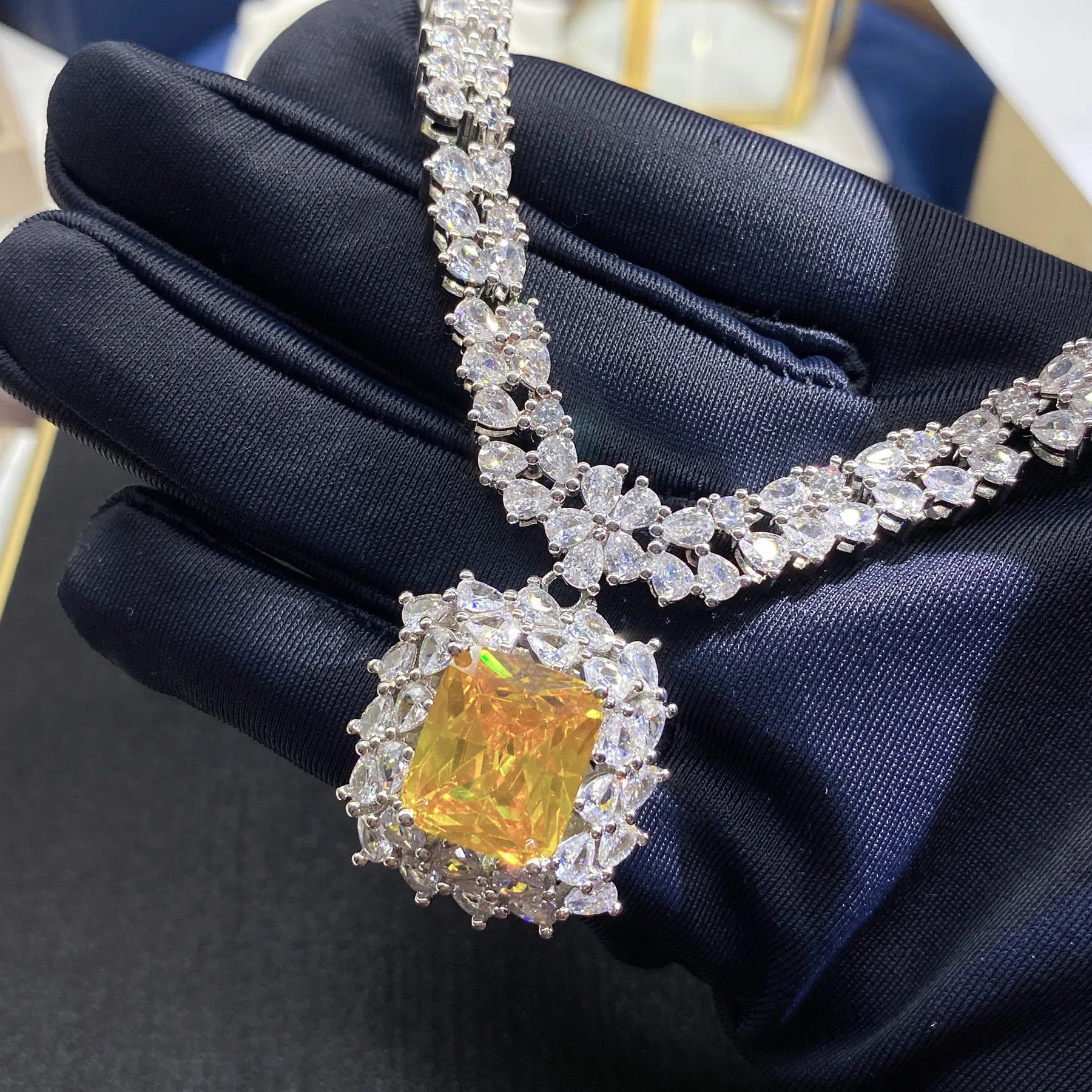 Women Canary tourmaline water drop gemstone necklace plated with 18K gold Farah crown zircon ring