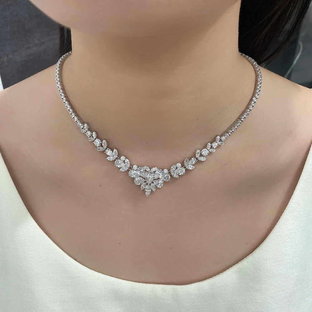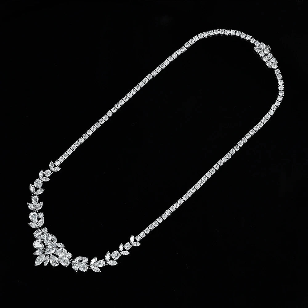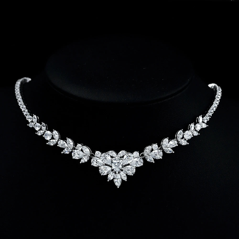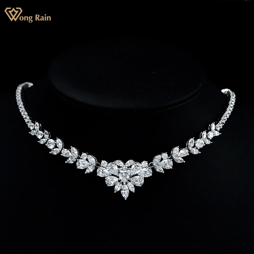 Wong Rain Luxury 925 Sterling Silver Pear White Sapphire Gemstone Pendant Necklace for Women Wedding Engagement Fine Jewelry