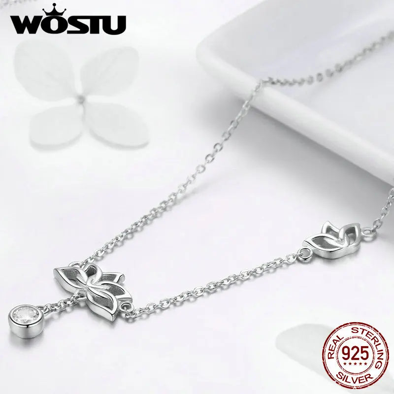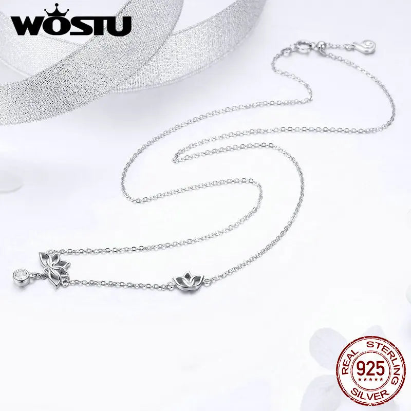 WOSTU Hot Fashion 925 Sterling Silver Lotus Flower Original Pendent Necklaces For Women Luxury Wedding Silver Jewelry FNN012