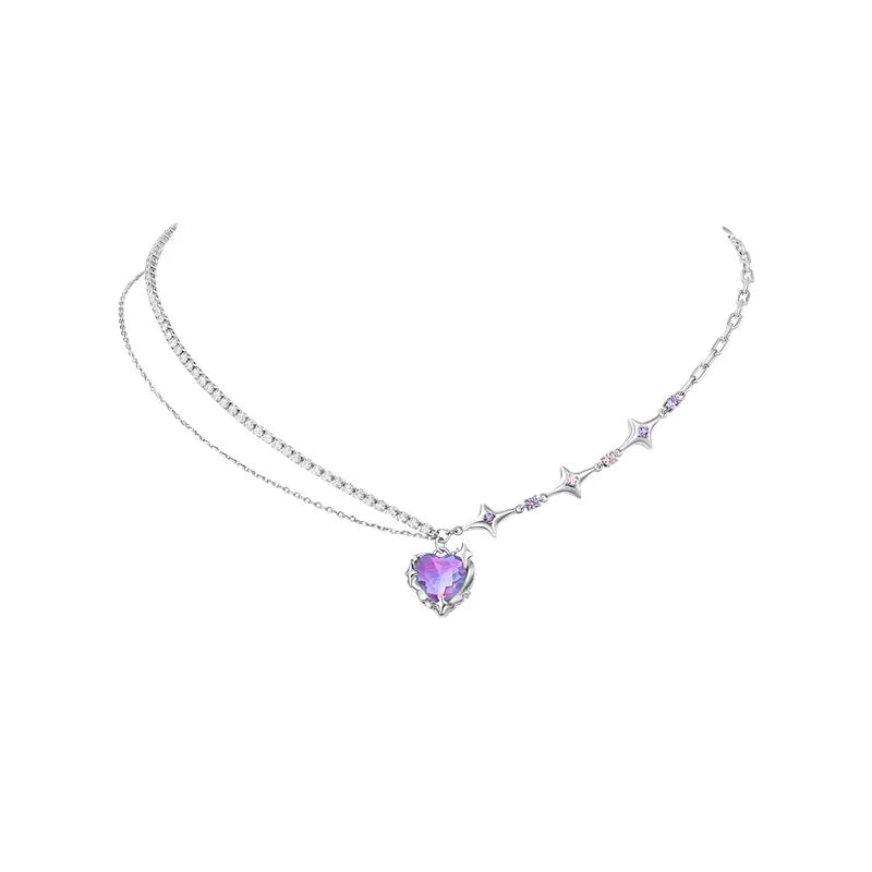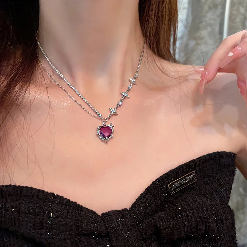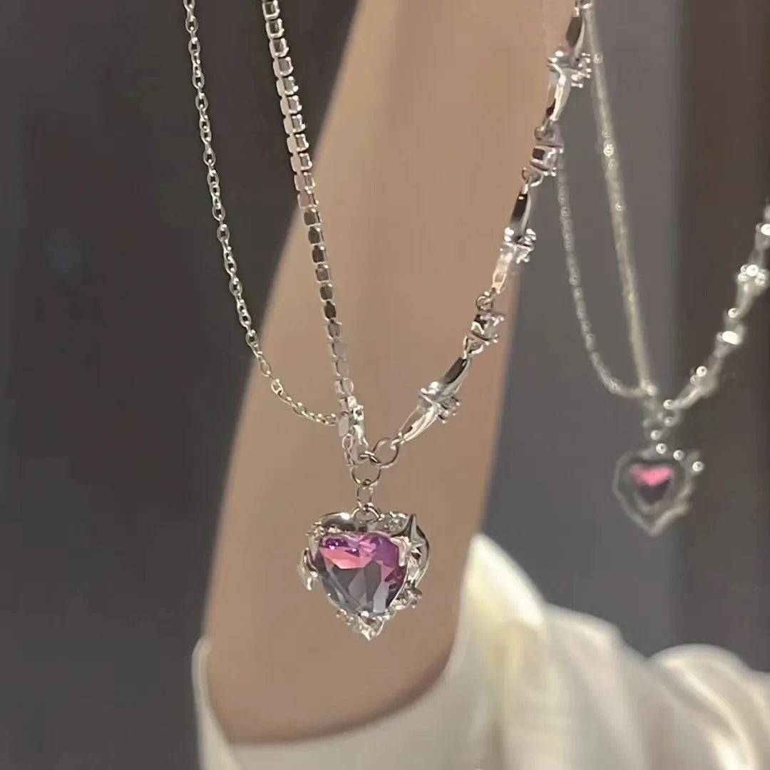 Y2K Accessories Fashion Peach Heart Water Drop Pendant Necklace Purple Crystal Egirl Sweet Cool Clavicle Chain Aesthetic Jewelry