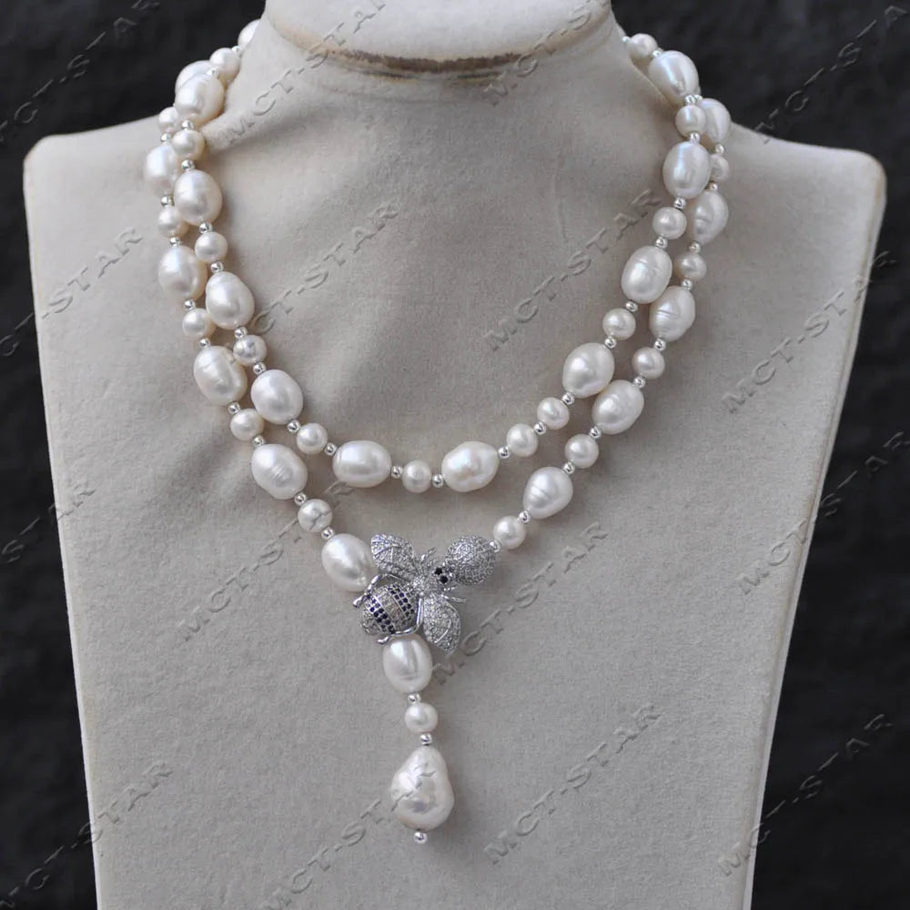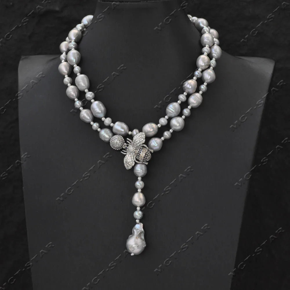 Z13663 30" White Gray Round Rice Freshwater Pearl Necklace Keshi Pearl Pendant CZ Custom Jewelry