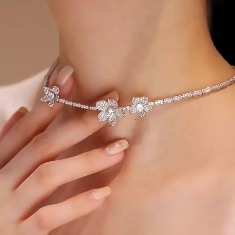ZOCA 925 Sterling Silver Necklace Dazzling Flower Design